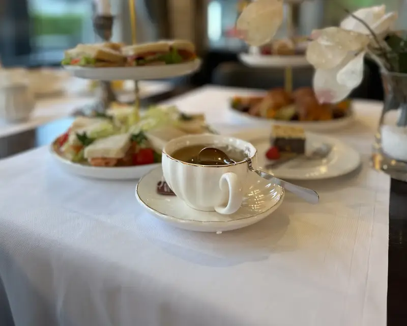 Experience the elegant tradition of High Tea, where fine savory and sweet delicacies are served in a stylish manner. Indulge yourself and discover a selection of exquisite sandwiches, mini quiches, mini cakes, and premium tea varieties - perfect for a relaxing break in a cozy atmosphere.